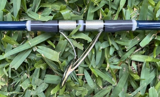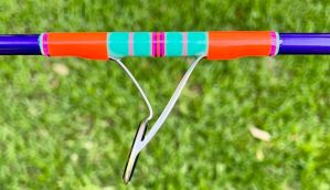 When ordering your rod, the dominant color is the thread over the guide feet (shown in teal below) and the complimentary color is the thread under the guide (shown in pink below). Any single foot guides and will only have the dominant color along with the other colors for trims.