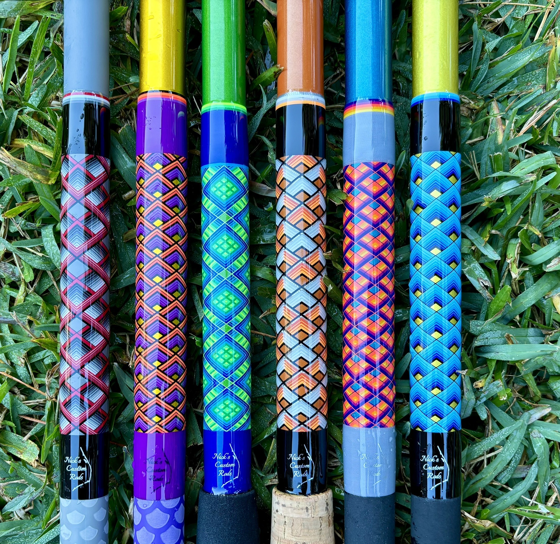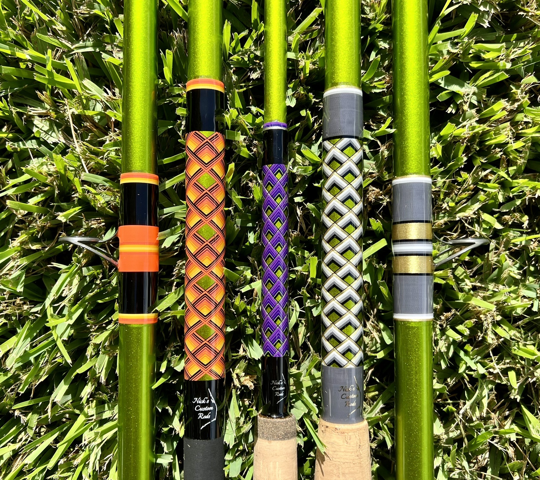 SVU1304L-2 in White Pearl, SVU1305L-2 in Jet Black and Gold all with Fuji Alconite Guides. SVU1305L-2 in Steel and Aspen with Fuji Titanium SiC Guides. These rods are all available for Local Pickup due to the 8’10” tip.