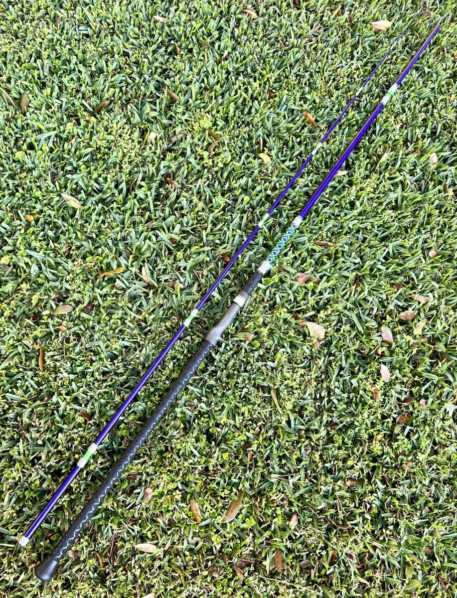 10′, Equal Sections, 20.5″ to Start of Reel Seat, Full Black Fishscale Grips (over cork tape 2.5″ Fore and 4″ Rear Grips), Fuji Dark Gray MN Alconite Guides 20-8 and Top – Rated for 40-50# line, 2-3.5oz lure. This rod can be shipped, please select either Local Pickup or Flat Rate Shipping when purchasing.