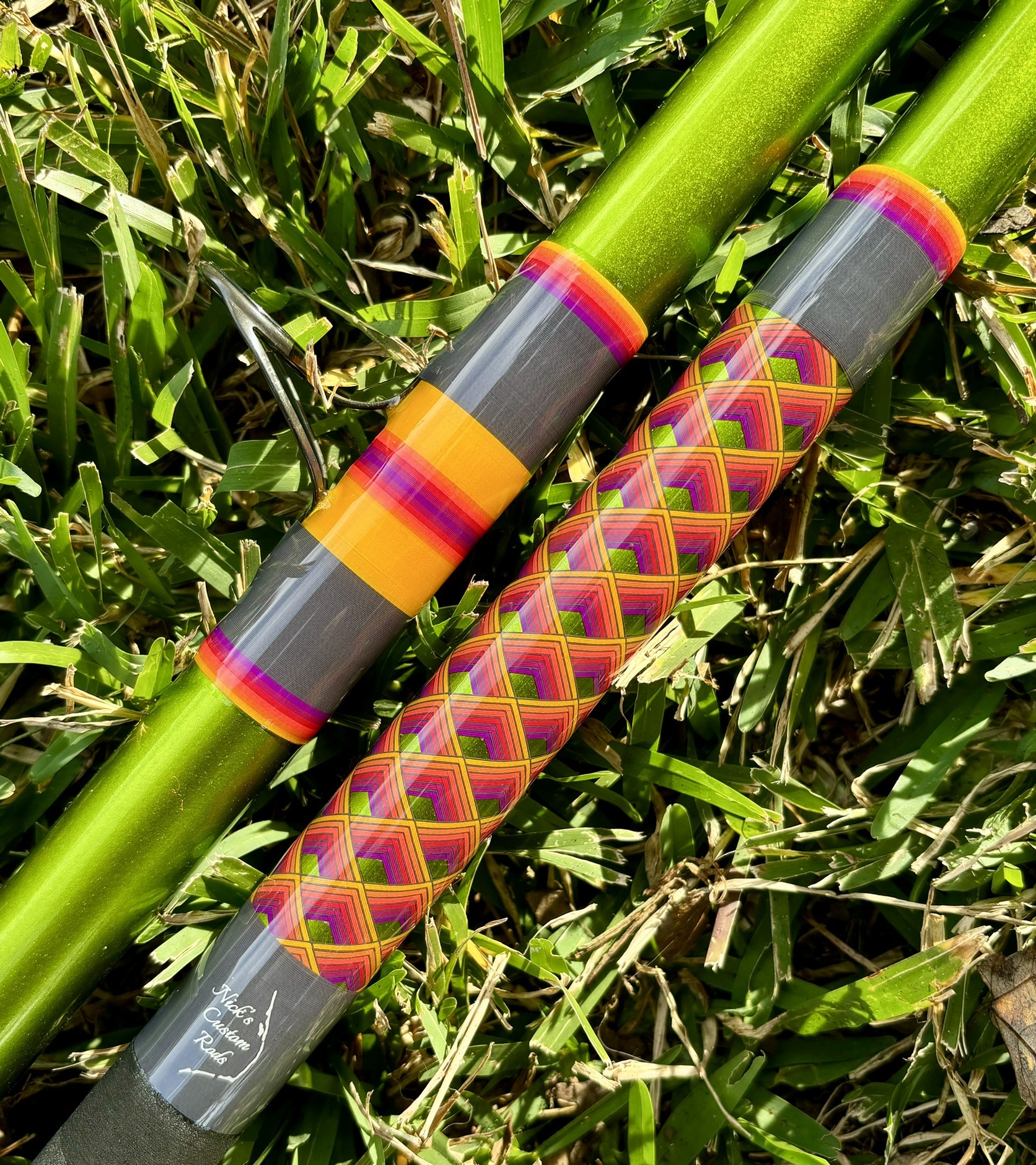 13′ Fern, Unequal Sections, Tip Section is 7’10” and the Butt Section is 5’7″. Fuji Trigger Reel Seat (29.5″ to start), Fuji BBMNAG 25-12 Guides, NonFlock Fore & Full Butt Heatshrink Grips. Rated for 6-10oz. This rod can be shipped, please select either Local Pickup or Flat Rate Shipping when purchasing.