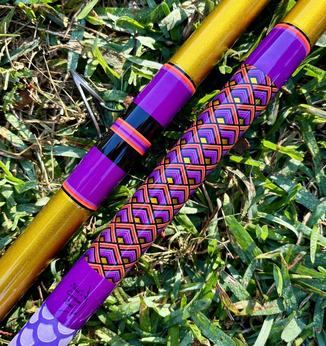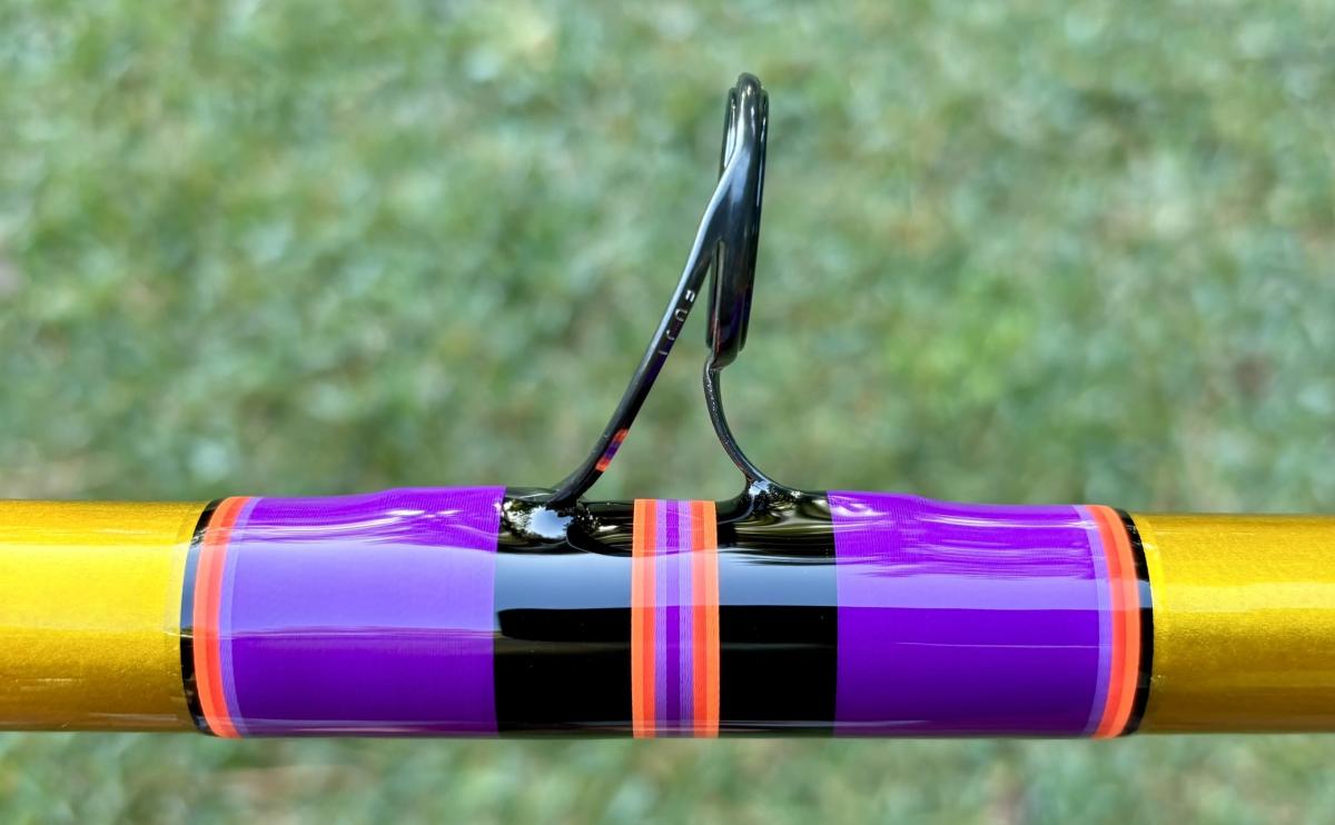 13′ Gold, Conventional Rod, Unequal Sections, Tip Section is 106″ and the Butt Section is 55.25″. Fuji Trigger Reel Seat (29.5″ to start), Fuji BB Alconite Guides, Fore & Split Rear Purple Fishscale Heatshrink Grips. Rated for 6-10oz. PLEASE SELECT LOCAL PICKUP WHEN PURCHASING THIS ROD. If you are interested in having this item shipped, message us.