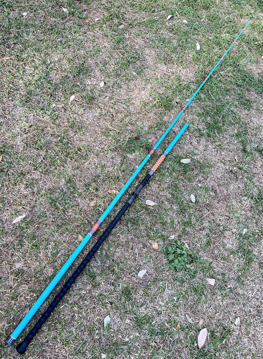 13′ Satin Teal, Conventional Rod, Unequal Sections, Tip Section is 106″ and the Butt Section is 55.25″. Fuji Trigger Reel Seat (29.5″ to start), Fuji BC Alconite Guides, Full Black XFlock Heatshrink Grips. Rated for 6-10oz. PLEASE SELECT LOCAL PICKUP WHEN PURCHASING THIS ROD. If you are interested in having this item shipped, message us.