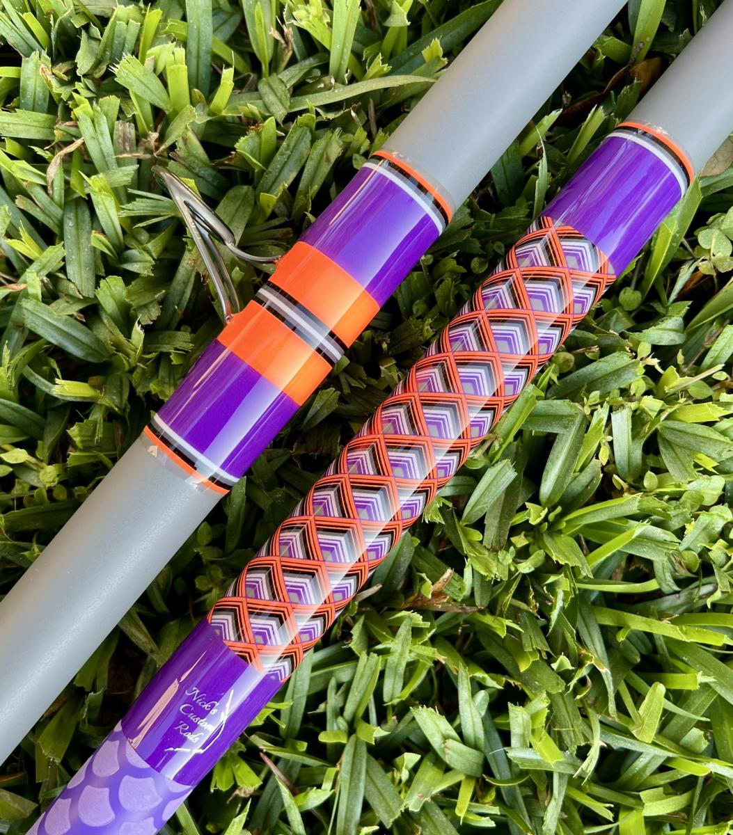 13′ Satin Space Gray, Unequal Sections, Tip Section is 106″ and the Butt Section is 55.25″. Fuji Trigger Reel Seat (29.5″ to Start), Fuji BCMNAG 25-12 Guides, Split Purple Fishscale Heatshrink Grips. Rated for 8-14oz. PLEASE SELECT LOCAL PICKUP WHEN PURCHASING THIS ROD. If you are interested in having this item shipped, message us
