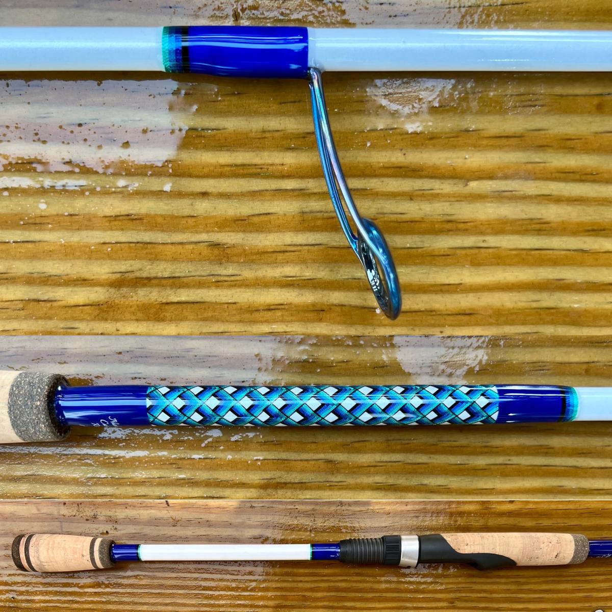 7′, Gloss Pearl White Finish, 1 piece Spinning Rod. Rated: Fast Action, Medium Power, 8-17lb line, .375-.75 oz lure